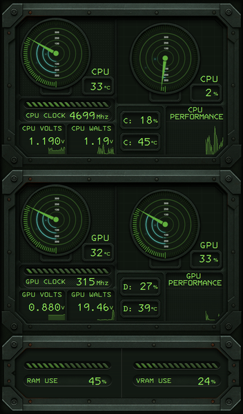 AIDA64 Skin Nuclear Gauge Panel HUD 600x1024